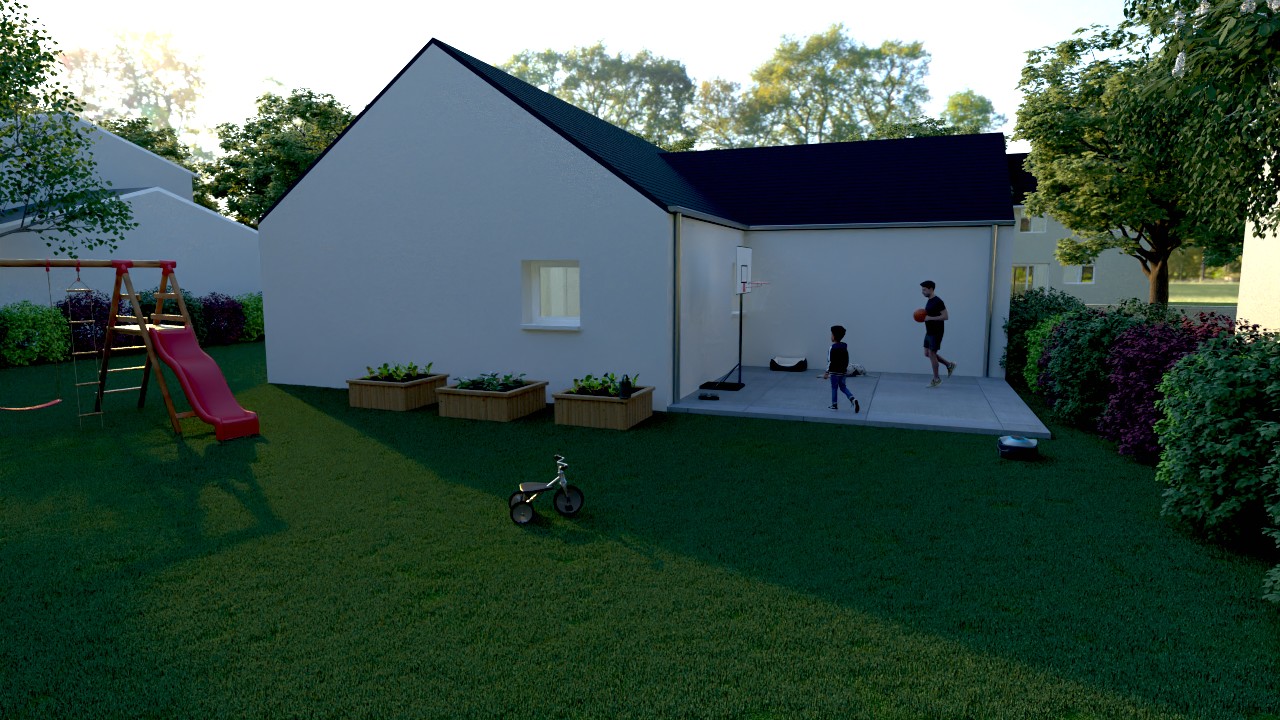 Prix Maison + Terrain, hors frais de notaire, aménagements extérieurs, taxes, cuisines et peintures. Sous réserve de disponibilité chez notre partenaire foncier. Visuels non contractuels, suggestion de présentation