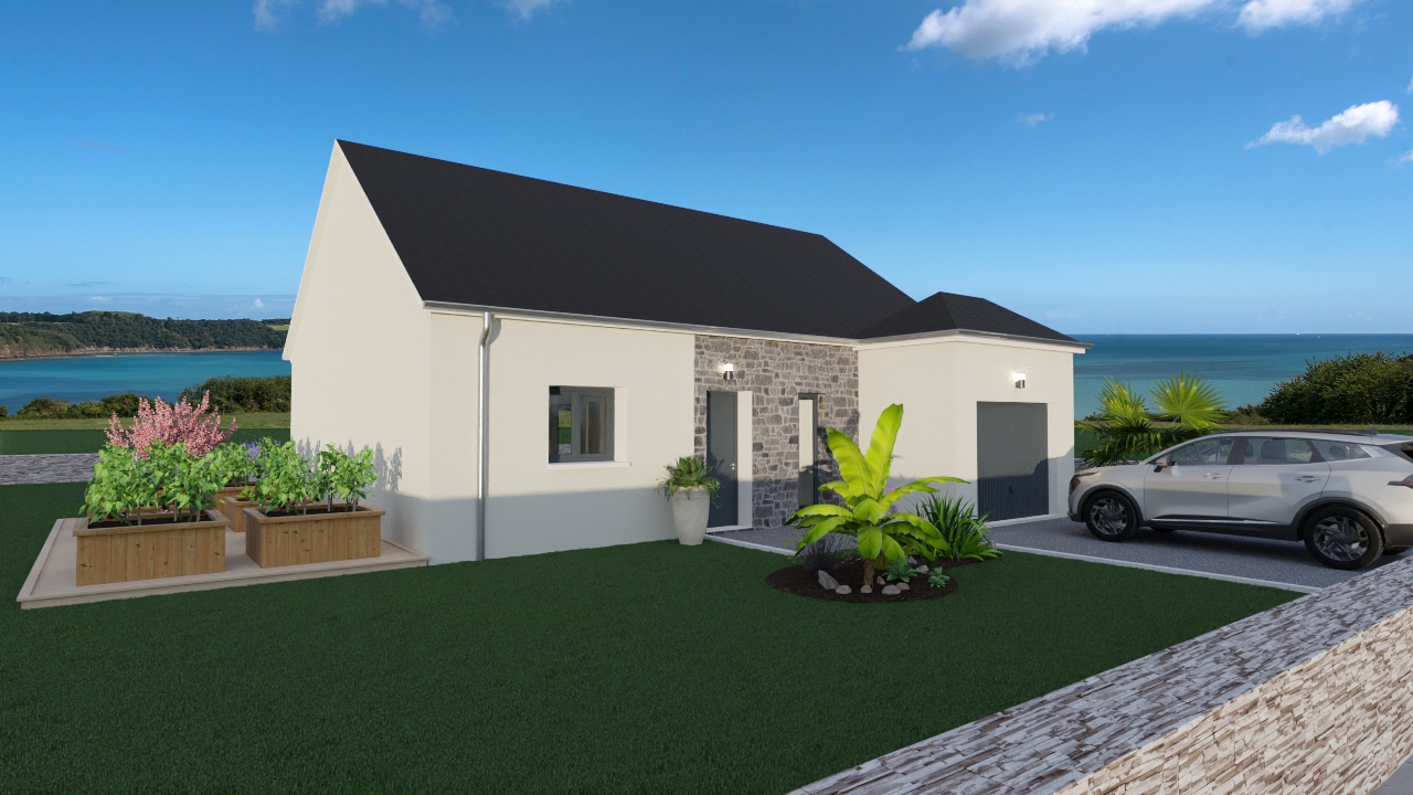 Prix Maison + Terrain, hors frais de notaire, aménagements extérieurs, taxes, cuisines et peintures. Sous réserve de disponibilité chez notre partenaire foncier. Visuels non contractuels, suggestion de présentation