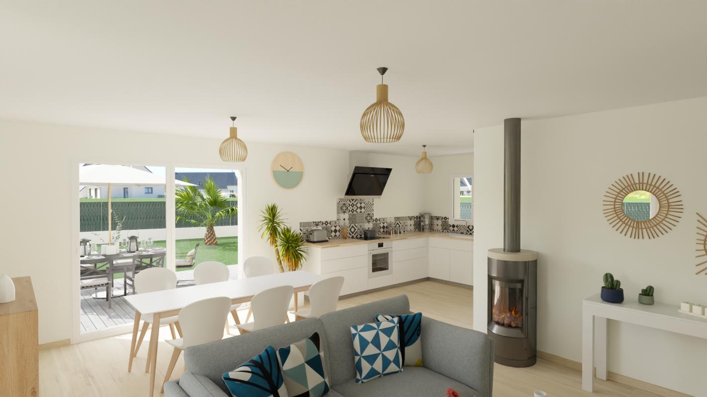 Maison de plain-pied disposant de deux chambres, une arrière cuisine et une belle pièce de vie.
