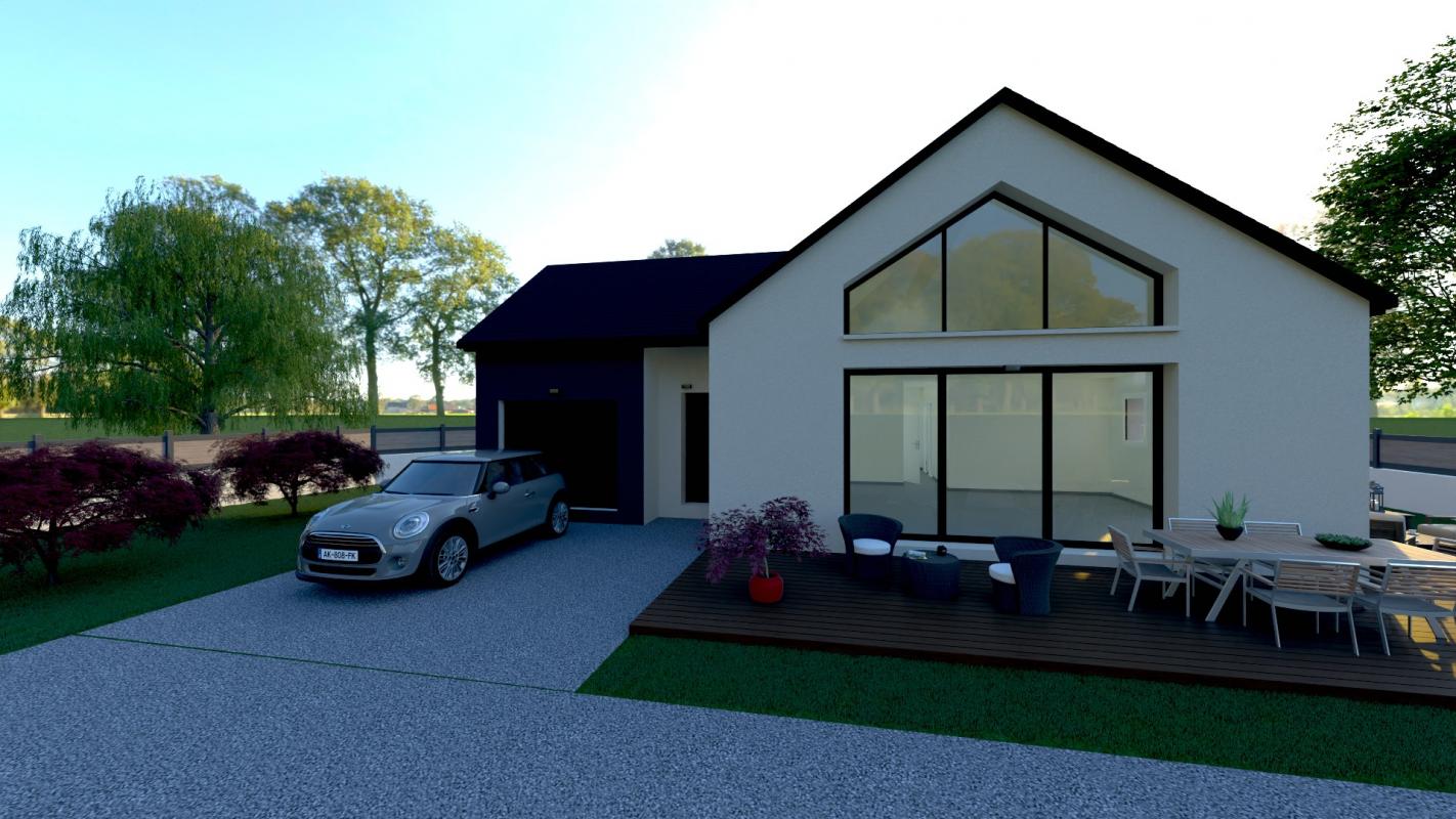 Terrain sous réserve de disponibilité auprès de notre partenaire foncier. Le prix s’entend hors frais de notaire, frais bancaire, branchements, raccordements, hors finitions intérieures (sol des chambres, peintures, cuisine aménagée) et aménagement paysagé. Projet personnalisable conforme à la RE2020. Visuels non contractuels